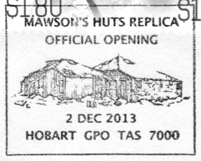 The Mawsons Hut's Foundation have created a replica of Mawson's Huts on the harbour front in Hobart, Australia. It was officially opened to tourists on December 2, 2013. Australia Post made this special postmark to commemorate the occasion.
